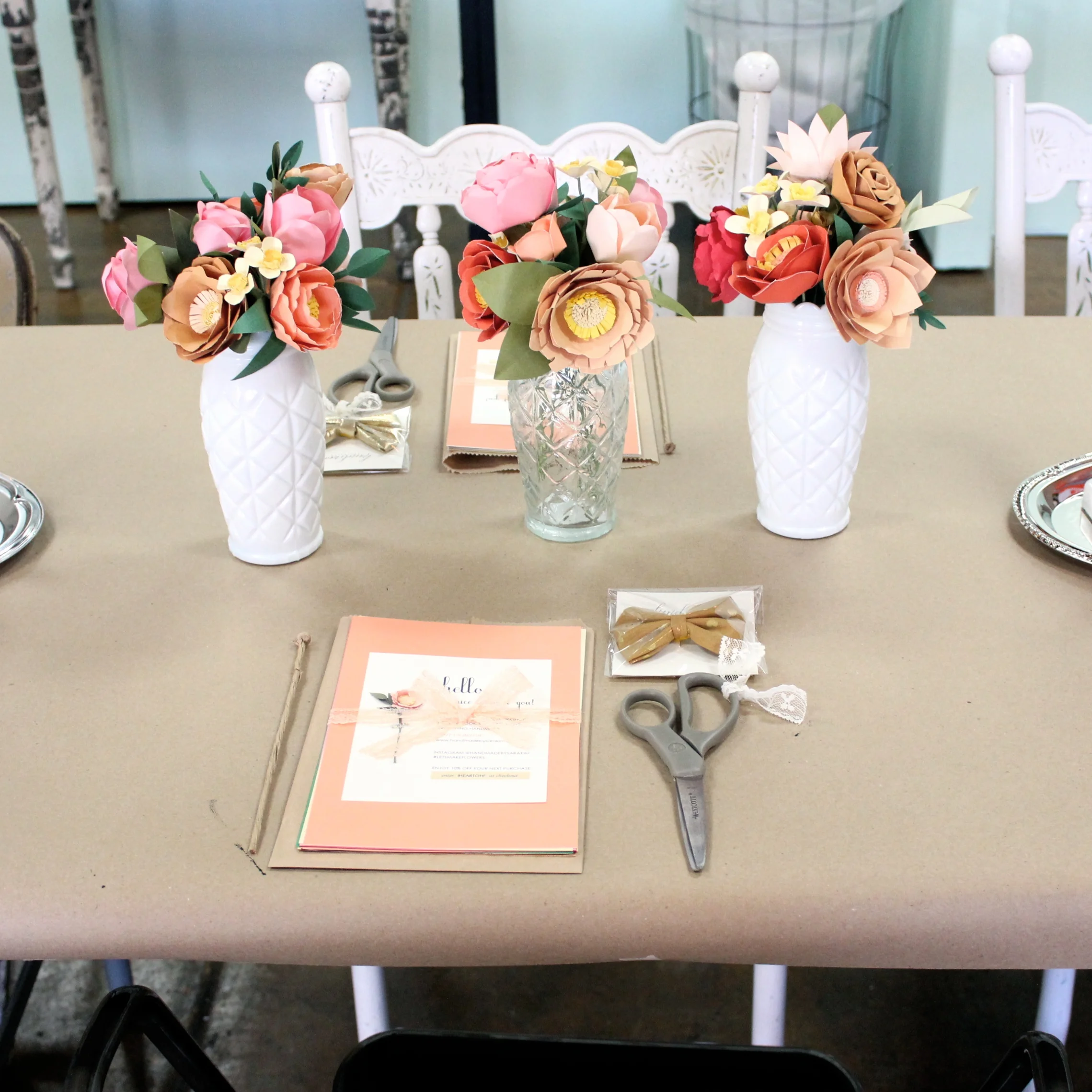 Just another recap from our recent paper flower workshop at Oh, Hello FriendStudio in Fullerton, CA. I was so excited when I was invited to host our paper flower workshop here. I remember the space being super cute from when I attended a calligraphy workshop there. If you haven’t been able to make it to our workshops yet, we have a few more dates coming up soon. Please check out our workshops page at www.handmadebysarakim.com/workshops or you can directly purchase tickets to our next workshop with OHF here.