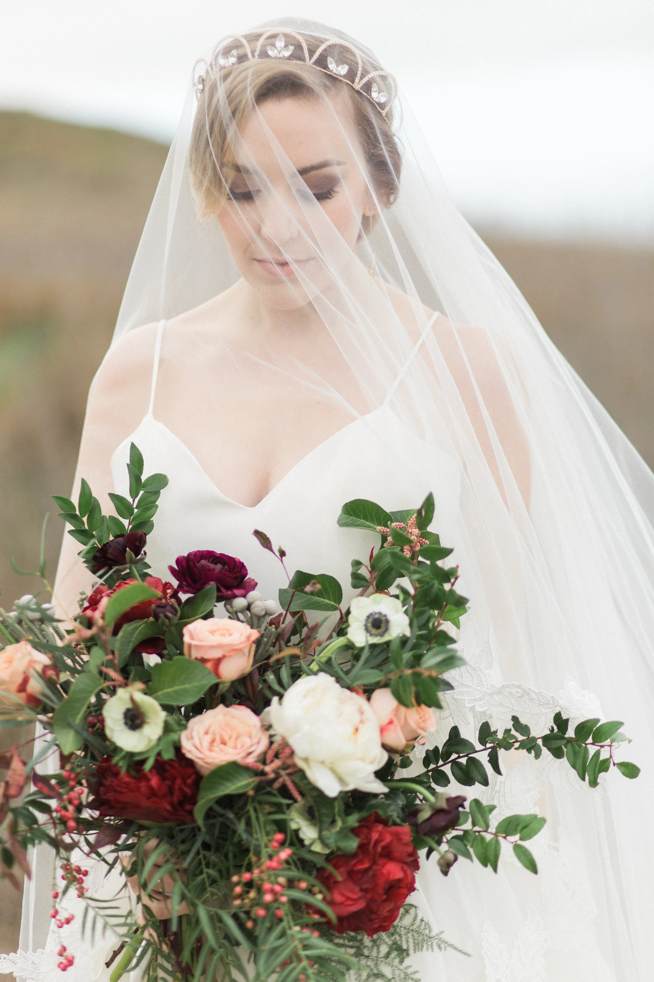 I had a lot of fun picking out the perfect lace trims for our new veils. These are all hand cut and sewn with high quality tulle and lace. This cathedral length veil is probably one of my favorites. We also have a few different styles, lengths, and a gorgeous blush colored veil available in our Veil section.